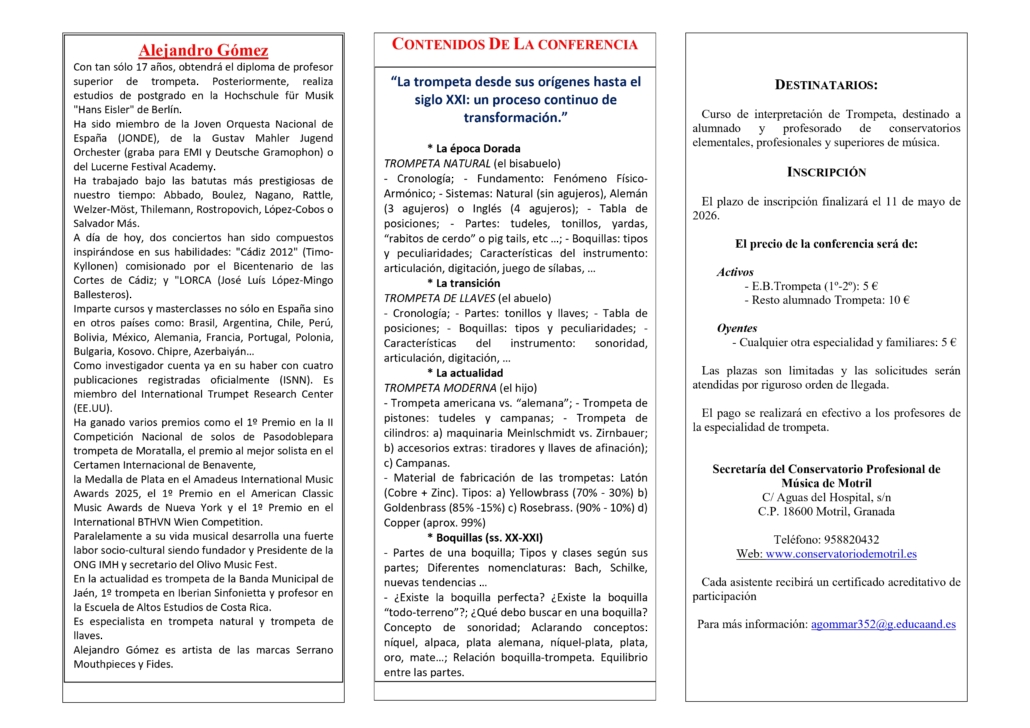 Conferencia: La trompeta desde sus orígenes hasta el siglo XXI: un proceso continuo de transformación